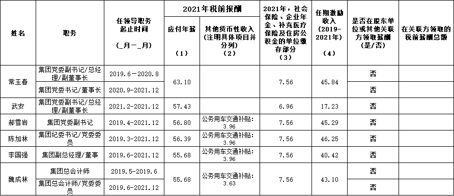 按照黑龙江省国资委《黑龙江省国资委出资企业负责人薪酬管理办法》黑国资分〔2016〕202号文件精神,黑龙江省农业投资集团有限公司对由省国资委管理的集团领导班子成员2021年度薪酬和2019-2021年任期激励信息向社会披露如下:
