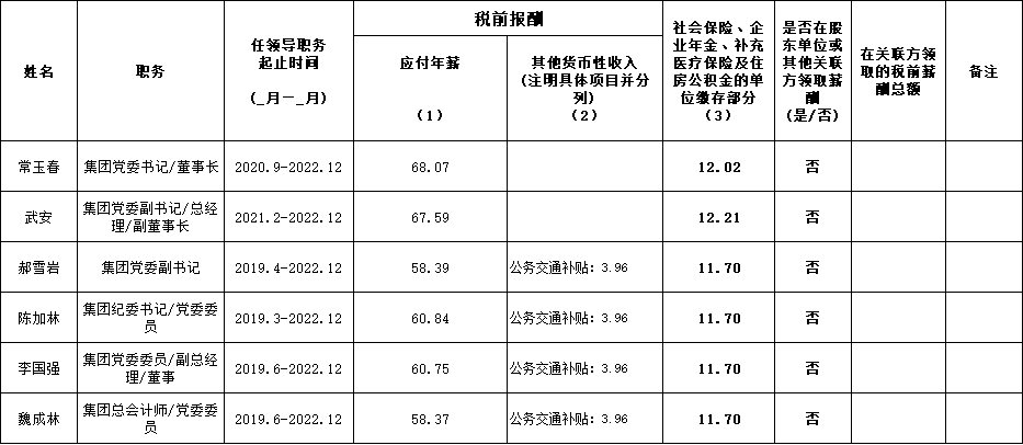 按照黑龙江省国资委《黑龙江省国资委出资企业负责人薪酬管理办法》黑国资分〔2016〕202号文件精神,开云手机注册有限公司对由省国资委管理的集团领导班子成员2022年度薪酬信息向社会披露如下。