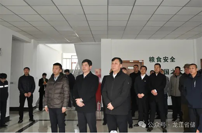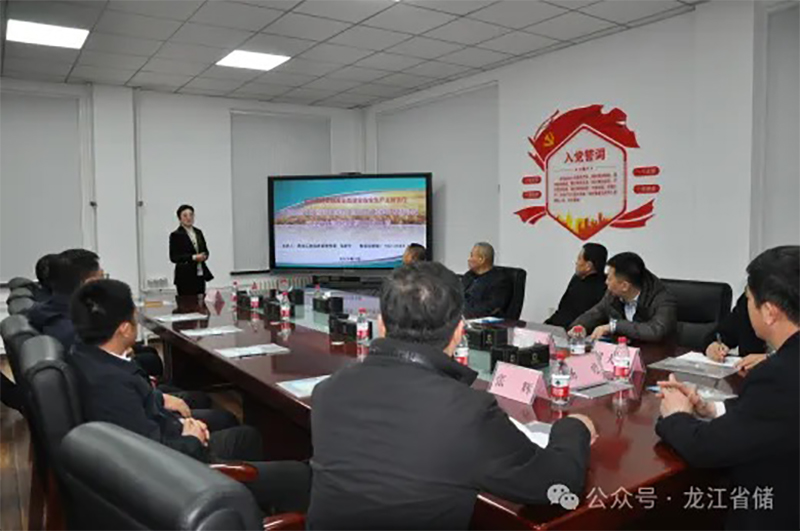 现场对“数字龙江”管理平台的使用和管理进行讲解。直属企业绿色仓储项目负责人、施工单位、监理单位现场负责人还观摩了哈尔滨直属库绿色仓储项目建设情况。