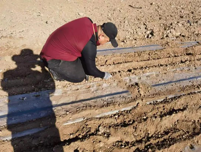 新疆繁育技术人员检查繁育播种是否有漏播情况