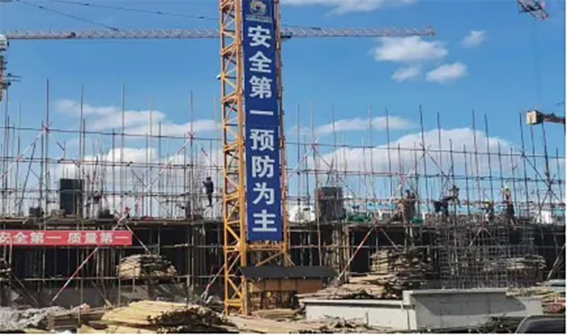 在海伦市棚改项目(海伦市紫金公馆住宅小区)工地施工现场开展搭建工作