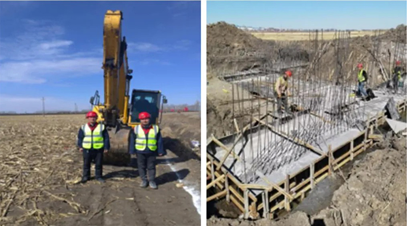 海延建筑工程有限公司在巴彦县改造提升高标准农田项目中开展搭建工作