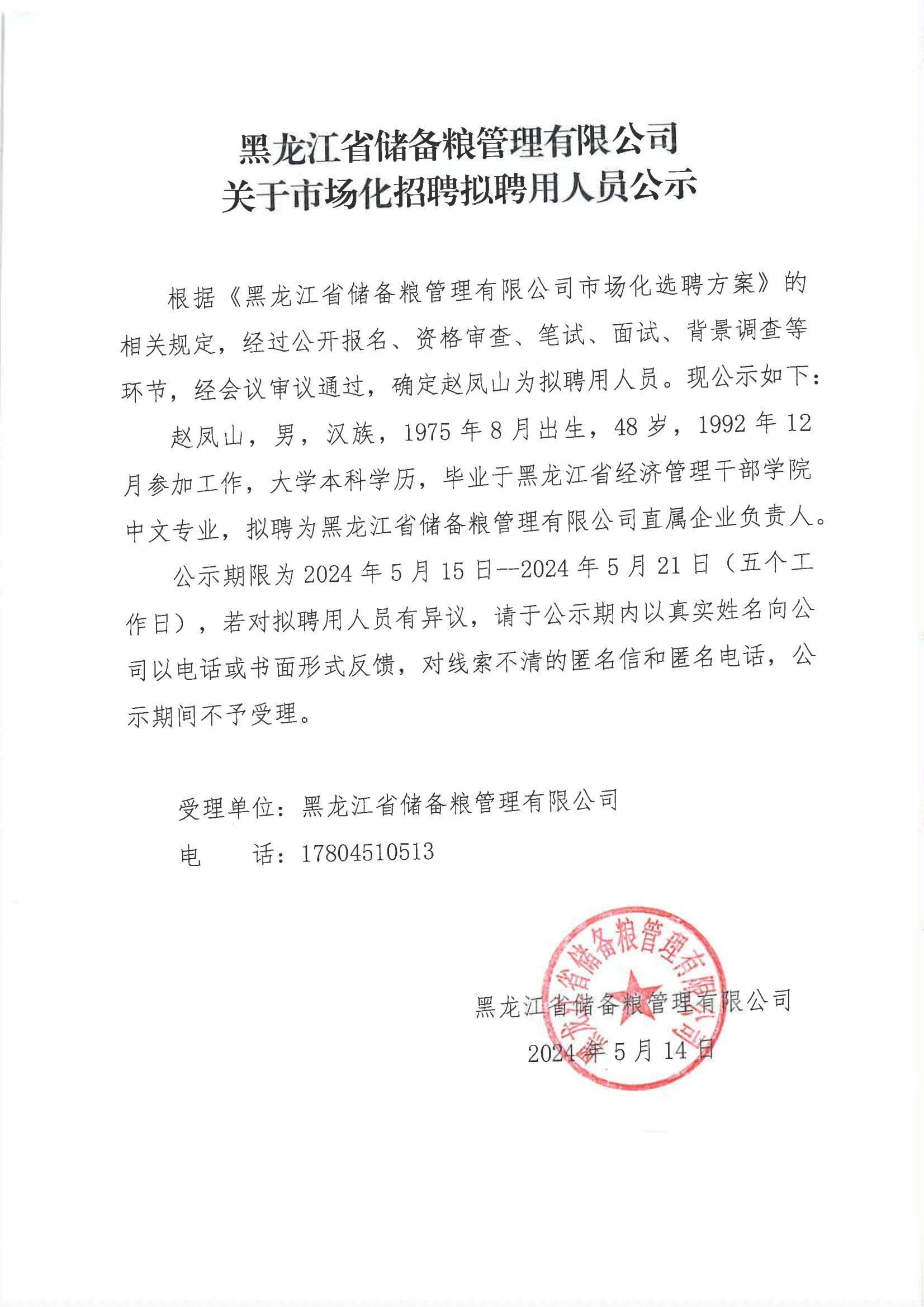 黑龙江省储备粮管理有限公司关于市场化招聘拟聘用人员公示