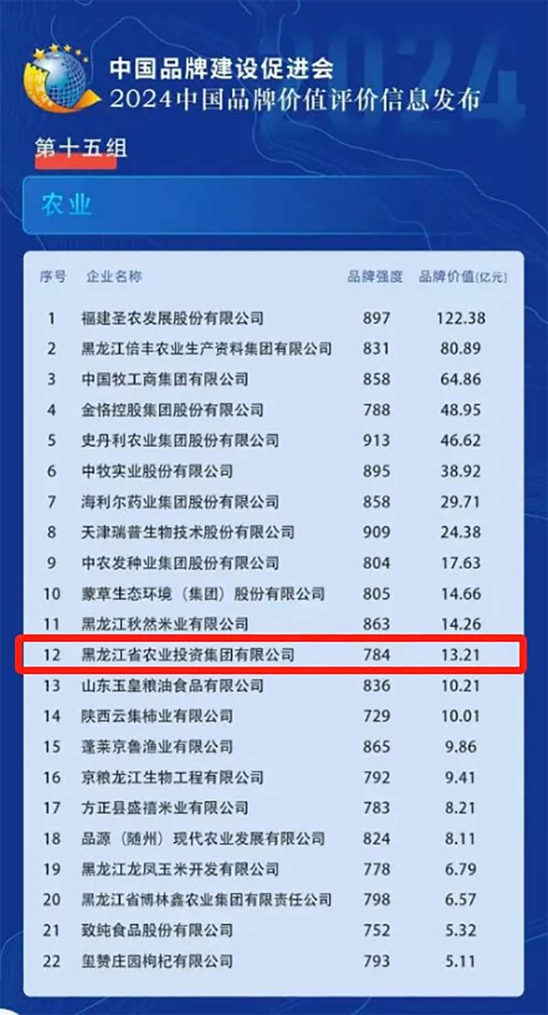 5月11日,新华社、中国品牌建设促进会、中国资产评估协会等单位在浙江德清联合发布“2024中国品牌价值评价信息”。开云手机注册有限公司上榜第十五组农业第12位。