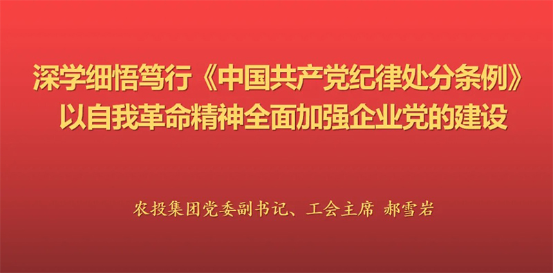 郝雪岩表示,在全党开展党纪学习教育,是以习近平同志为核心的党中央站在党和国家事业发展全局的战略高度,推进全面从严治党纵深发展的重大举措。并结合个人学习收获,联系工作实际,从“深学、细悟、笃行”三个方面破题,与农投生物全体党员作交流分享。他表示,要深刻认识到这次新修订的《中国共产党纪律处分条例》(以下简称《条例》)充分彰显了全面从严治党永远在路上、越往后执纪越严的鲜明态度;要牢牢把握住学习贯彻《条例》的政治性、思想性、人民性、严肃性、针对性、实践性;要持续发力在学纪、知纪、明纪、守纪上下功夫,不断增强纪律意识、加强自我约束、提高免疫能力。