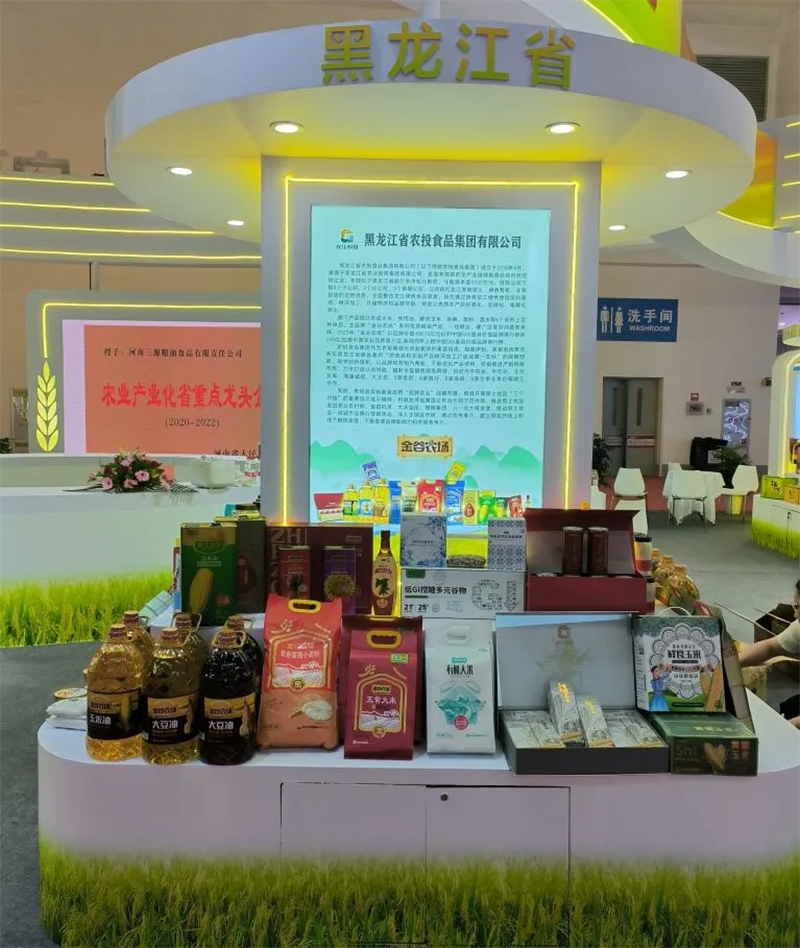 展会现场,“金谷农场”品牌粮油产品展示种类繁多,成为全国粮食产销合作的一张“名片”,“白金名片”——“金谷农场”五常基地大米、有机大米,“黄金名片”——“金谷农场”玉米油、大豆油,“龙江纬度”“甄致冠”系列高尖端食用油和鲜食玉米悉数亮相展区,“黑土优品”及“金谷农场”系列有机杂粮、五常大米、非转基因大豆油洽淡不断,洽谈会当天,农投食品集团与来自福建省、内蒙古、河南省等5家企业达成产销互动合作意向,会前、会中共洽谈省外三十余家意向客商,充分展示了龙江农产品的品牌公信力。