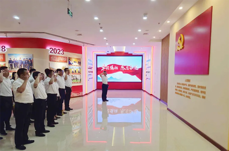 参观后,全体党员干部面向党旗,举起右拳,重温入党誓词,再次坚定了“不忘初心、牢记使命”的信念和决心。