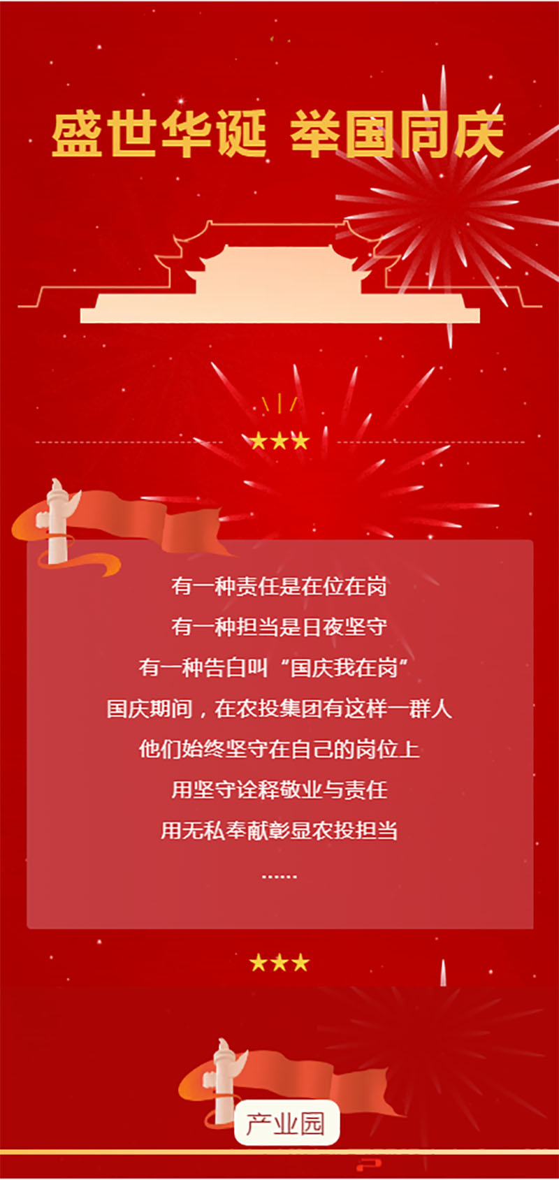 国庆期间,农投数字农业产业园人用双肩扛起责任,用汗水致敬职责,用初心坚守岗位,用奋斗书写华章。产业园公司以“创新发展、开放共享、互惠共赢”为经营理念,全面践行“让龙江农民更幸福,让龙江农业更强大,让龙江农产品更有市场竞争力”的农投使命,为全省优质农产品企业搭建共享式农产品品牌价值及市场影响力,接续奋斗,再创辉煌!