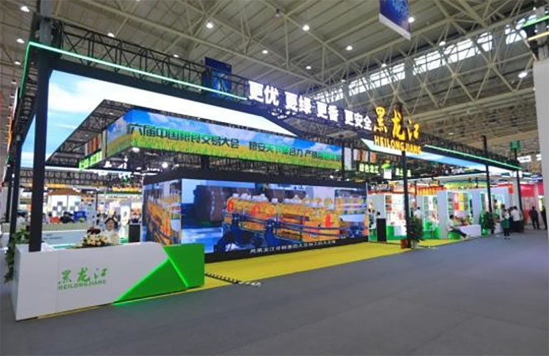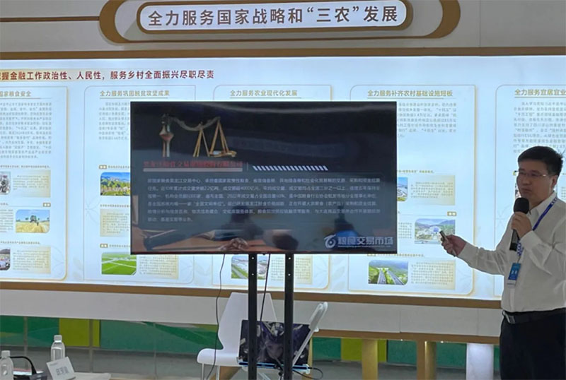 农投集团展位位于黑龙江展区核心位置,突出展示“金谷农场”品牌及产品,以及粮食交易服务为促进粮食产销联动结合的发展成果。