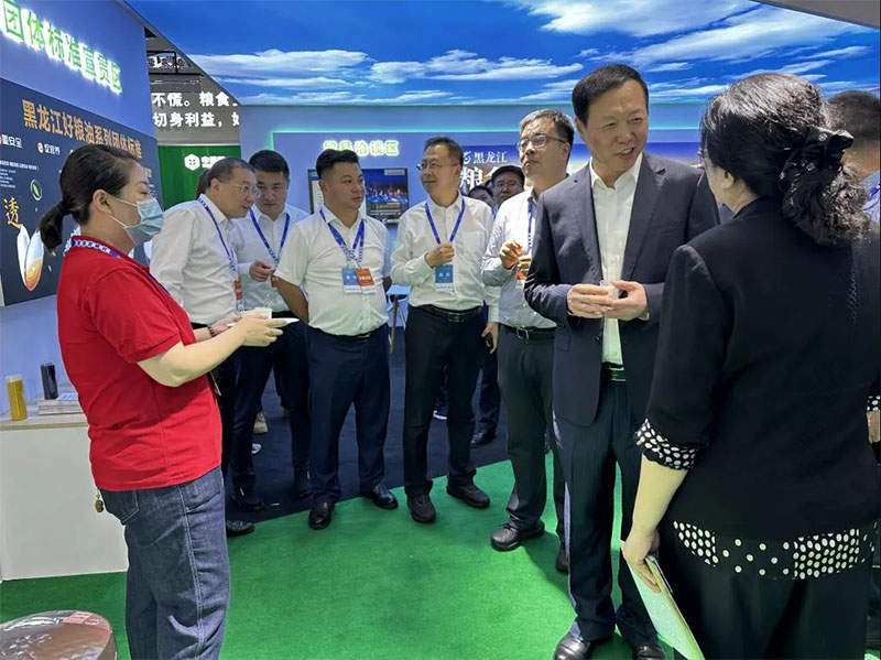 展会期间,国家粮食和物资储备局、中国农业发展银行、黑龙江省粮食和物资储备局等多位领导莅临农投集团展位调研指导工作,农投集团党委副书记、工会主席郝雪岩及集团权属企业负责人陪同调研,并对主要产品和现行业务作了讲解。