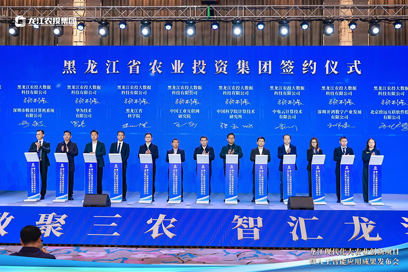 会上,农投大数据公司与中国科学院计算技术研究所、工联院网络所、中国电子云、黑龙江省科学院、深开鸿、华为技术有限公司、致远互联、腾讯云、商汤科技、黑龙江移动、哈尔滨联飞、郑州华粮等12家单位签署了战略合作协议,标志着各方将在智慧农业领域展开深度合作,共同推动黑龙江省农业数智化进程。发布会现场还展示了“伏羲农场”无人智慧农机装备和无人机试飞、水肥一体化等设备,展现了智慧农业的先进技术和应用成果。