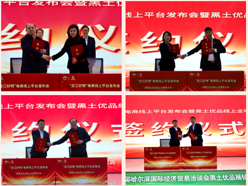 省妇联党组成员、副主席胡波致辞 省农投集团副总经理李国强致辞 推介会上,“龙江好物”电商线上平台、哈尔滨银行、上海吉贡企业管理有限公司分别进行了产品发布和推介。省农投集团与哈尔滨银行、农投食品公司与智谷云农业科技院、哈尔滨银行绥化分行与农垦龙王食品有限公司、哈尔滨银行哈尔滨分行与鲜玉良田公司、农投食品公司与上海吉贡公司分别签订了合作协议。省妇联向省农投集团授予“巾帼直播选品基地”称号。 在与会领导共同见证下,“龙江好物”线上平台正式启动运营。 未来,“龙江好物”平台将依托黑龙江优质农产品资源,融合科技与金融力量,打造龙江电商发展新引擎,助力“黑土优品”走向全国市场,推动龙江农业产业数字化升级,为乡村振兴和区域经济发展注入新动能。