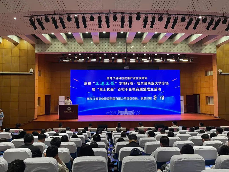 6月13日,省教育厅联合相关单位举办高校“三进三促”专项行动·哈尔滨商业大学专场暨“黑土优品”百校千企电商联盟成立活动。农投集团作为省属大型涉农企业,积极响应号召,携旗下多款优质农产品精彩亮相,助力打造 “黑土优品”品牌,推动龙江农业高质量发展。农投集团副总经理唐浩受邀出席并致辞,农投食品集团副总经理朱芳冰现场推介“黑土优品”。