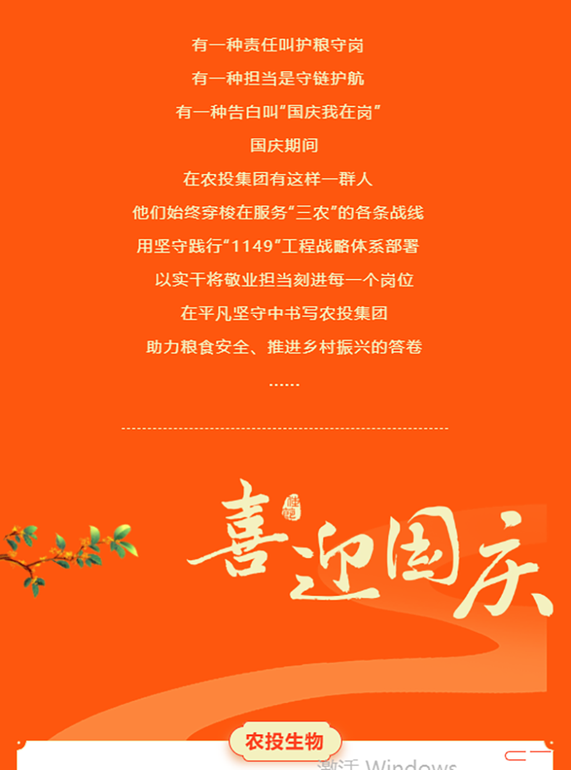国庆我在岗 礼赞新时代丨农投生物