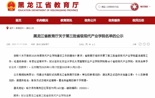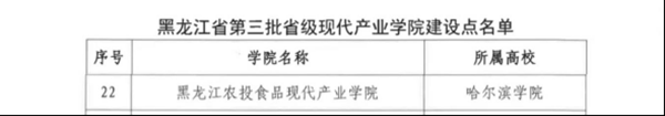 近日,黑龙江省教育厅公示第三批省级现代产业学院建设点名单,由农投食品集团与哈尔滨学院对外合作交流处、食品工程学院联合申报的“黑龙江农投食品现代产业学院”顺利通过评审论证,成功入选省级建设点。