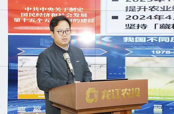 在研讨环节,中国科学院计算技术研究所张玉成研究员,中国农业科学院张继宗研究员、邹金秋研究员,东北农业大学郭翔宇教授等专家学者,分别就农业智能装备研发、农业资源高效利用、新质生产力培育路径等议题发表了主旨演讲,为深哈农业产业园建设提供了重要的学术支持与决策参考。深圳市农业与食品投资控股集团副总经理管耀华等企业代表介绍了深圳市在农业产业赋能方面的先进经验与实践成果,为南北资源的有效对接提供了切实可行的实践范例。